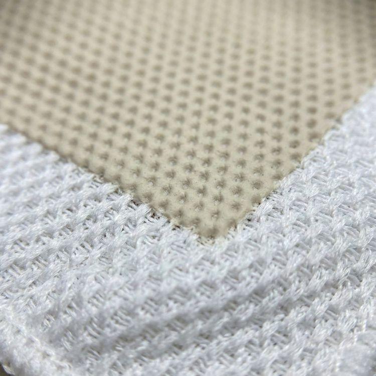 White fabric shows dirt on both sides — you always know when to rinse
